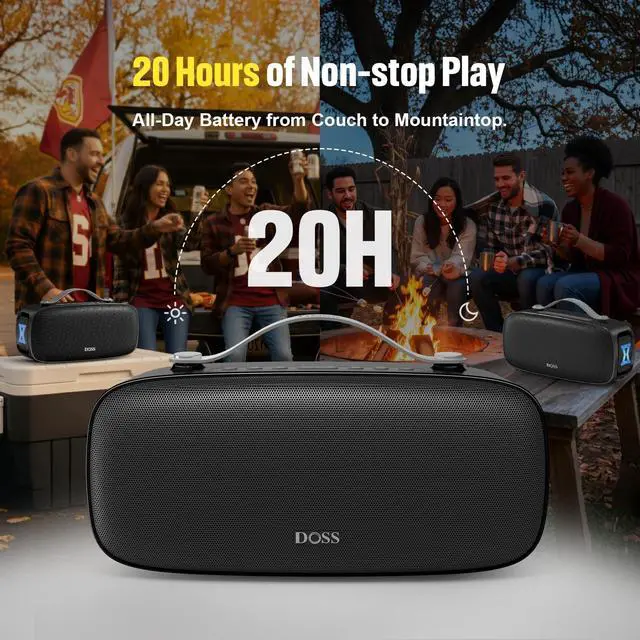 Go: This portable bluetooth speaker keeps the music playing all day longup to 20 hours of sound on a single charge. It even has a built-in power bank to recharge your phone, so you stay connected and never miss a beat. ^^ Double the Sound, Light Up the