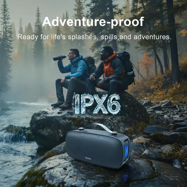 Beat Anywhere: This IPX6 outdoor waterproof speaker goes where you go. With a built-in carry handle, you can take your music worry-free to the beach, by the pool, or even in the rain. ^^ Play All Day, Charge On the