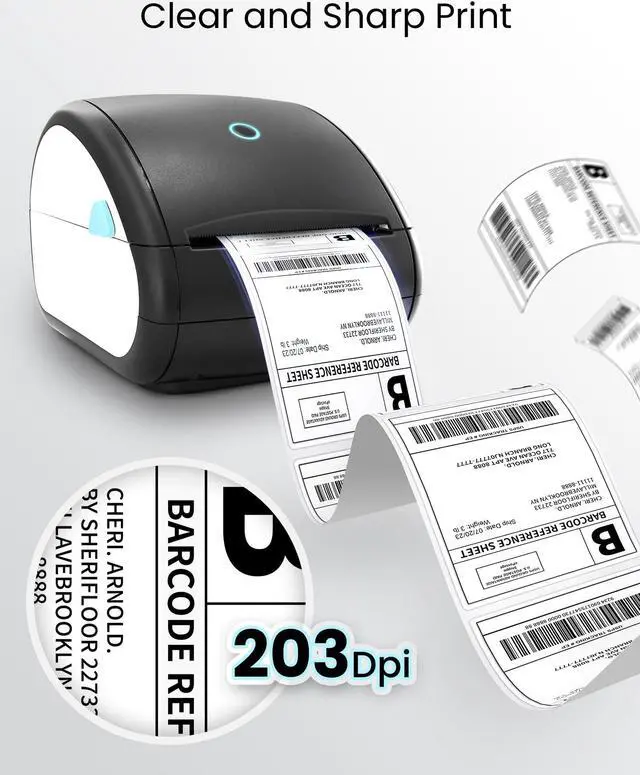Economical - This thermal shipping label printer 4x6 is equipped with a higher precision thermal print head, which can print clearer and sharper than the thermal label printer with the same 203 dpi. And the thermal label printer does not need ink and toner to print labels, which can save a lot of costs.