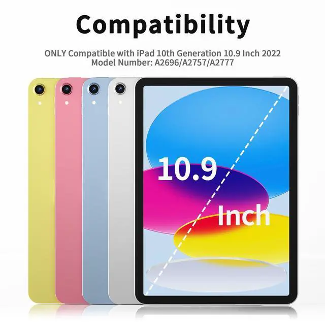 Compatibility: Designed for iPad 10th Generation 2022 10.9 inch. ( Model: A2696/A2757/A2777 ), NOT compatible with any other iPad models. Please be kindly check your iPad back model number before purchasing