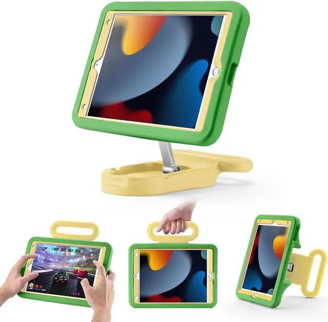 Kids Case for iPad 7th/8th/9th Gen 10.2 inch,Adjustable Portrait/Landscape Stand/Drop Proof with Handle/Kickstand,Child Friendly Protective Cover for iPad 10.2 2021/2020/2019 (GreenYellow)
