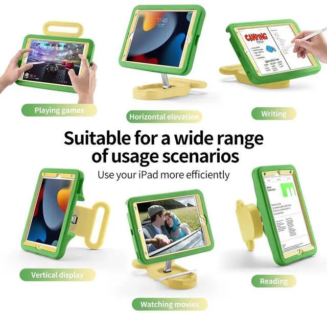 Child Friendly: Made of non-toxic EVA materials, this safe iPad case provide easy operation and comfortable hand feeling to children. The iPad case for kids is an ideal defender for school and classroom tasks.