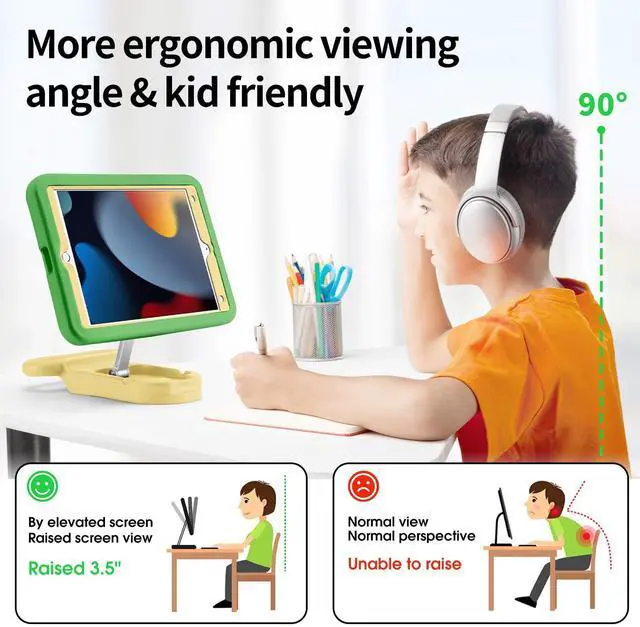 Raised Screen Viewing Angle: iPad's elevated viewing angle is closer to your natural line of sight and more ergonomically designed to keep you in a comfortable position even when using it for long periods of time.Full Protection: Full Body Cover, access to all functions through case. Blocks dust, sand and splash from ports which lengthens the life of the device.