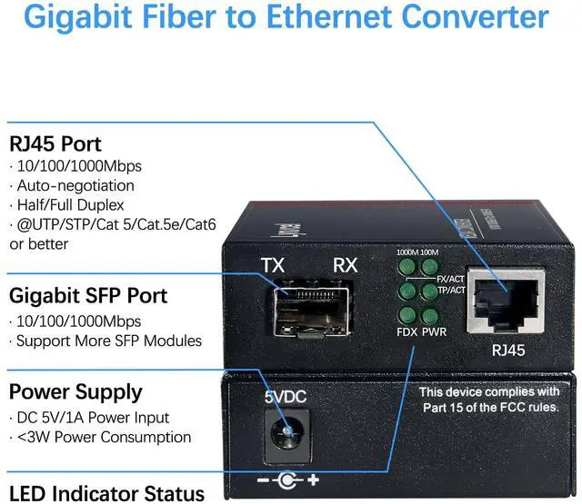 What's Included: 2pcs Gigabit Ethernet Media Converter ; 2pcs 5V 1A Power Supply, 100V-240V; 1 * User's Manual. Can be used in multiple work environments, such as home, business, security monitoring systems, campus networks, and more.