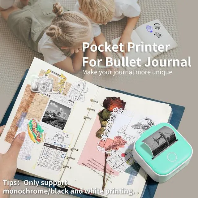 [Funny Gifts] Mini sticker printer - can be used to print black and white photos, to make sticky notes, scrapbooks, memos, labels and etc.This sticker maker machine can cultivate children's creativity and parent-child activities.Mini portable smart photo printer for iphone - must a funny gifts for children, students, teachers and DIY craftsman on Christmas, Children's Day or Thanksgiving day