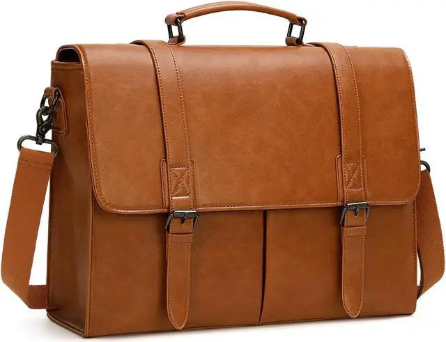 [(Large Capacity)] The briefcases for men has plenty of room to keep all your daily needs. 1 Separated laptop compartment can fit 15 - 15.6 inch laptop and 12.9 inch iPad. 1 Main compartment for books, documents, kindle, water bottle. 2 Slot pockets for wireless mouse and charger. 4 Pen holders. 1 Wall zipper pocket for wallet, passport. 2 external pockets for headphones, phone, keys, tissue etc. 1 Back pocket for valuable items.