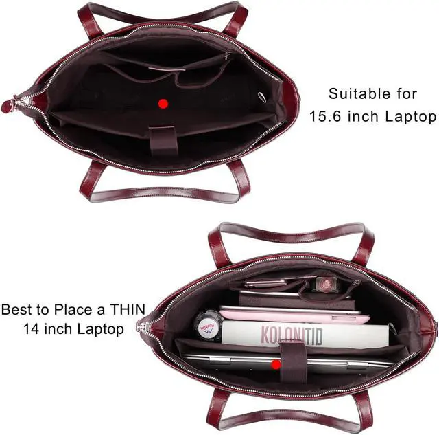 Premium Material: TOP POLISHED Genuine Leather, polished with OIL WAX LEATHER, it would look a little shiny; SILVER Metal hardware, REINFORCED TRIANGLE stitching at handles for not breaking easily, special WIDER strap, lessen the pressure a common laptop bag can bring to your shoulders