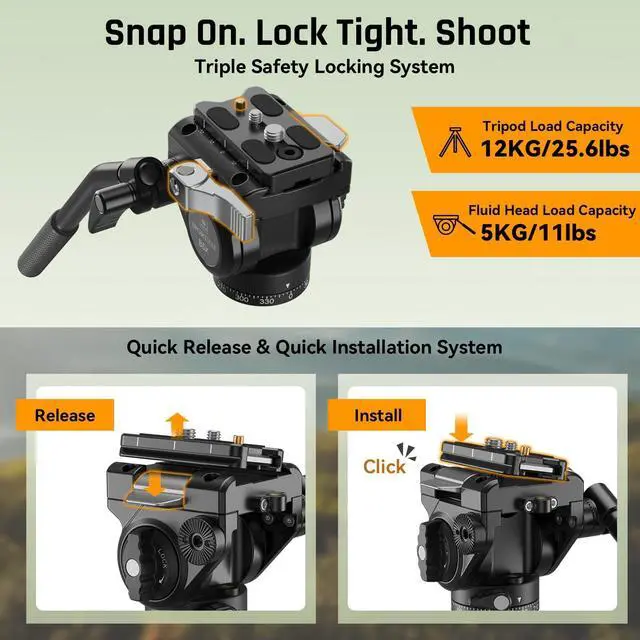 ^^ B5X Pro Outdoor Fluid Head - With new rapid system and side loading plate design, installation is easier and faster. Superior balancing system allow 360 panorama panning friction adjustment and -60 to +90 stepless tilting, B5X fluid head loads up to 5kg/11lba. can be rotated smoothly to help carpture moving object. Ergonomic design handle coated with rubber sleeve, can be easily adjusted for comfortable operation. ^^ Pro Binocular Adapter BA-2 - Come with Binocular tripod adapter BA-2,, made of high quality aluminum alloy, BA-2 is durable and sturdy, it'sonly 0.07 kg but can load up to 5kg.