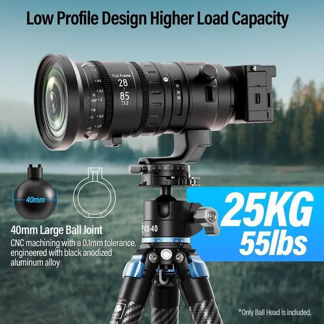 Compactness and portability: With a height of 90mm and a lightweight profile of 496g, the KS-40 combines compactness with portability. This balance ensures that the ball head can be easily integrated