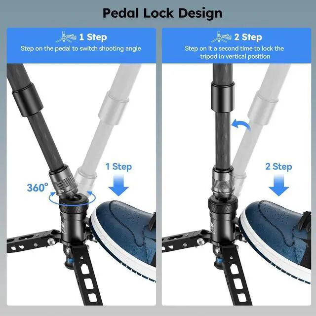 SIRUI SVM-165P Pedal Monopod: The foot pedal on the base feet makes it easy to lock and unlock the monopod and to adjust the angle of your shot. Press the pedal for easy constant swivel in any direction, then lock down in the center by taping the pedal again. ^^ Rapid One-Step