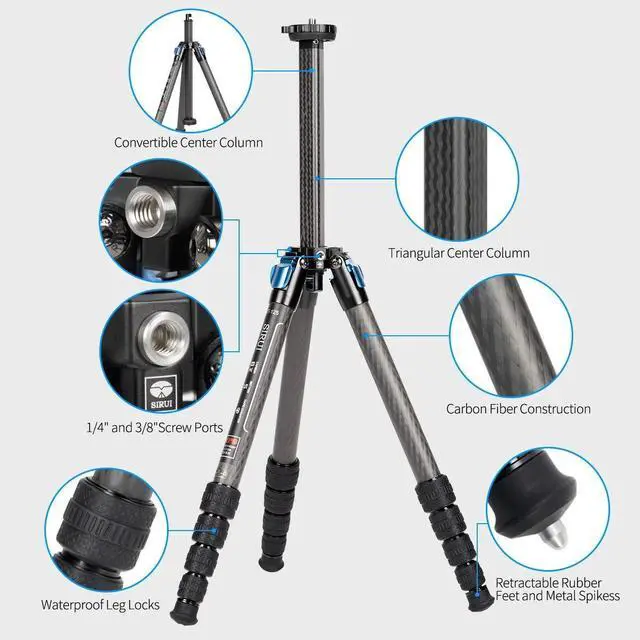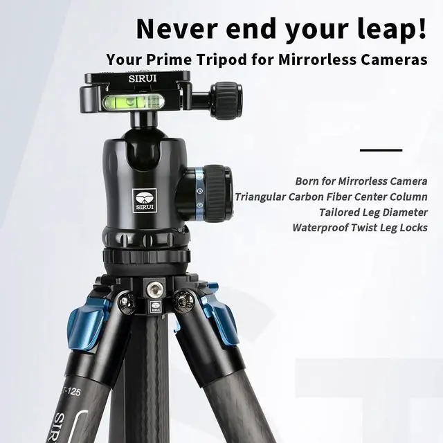 Mirrorless Cameras: ST series tripods are especially designed for mirrorless cameras with tailored large leg diameter of 26.5 mm/ 1.04 inch and compact size.