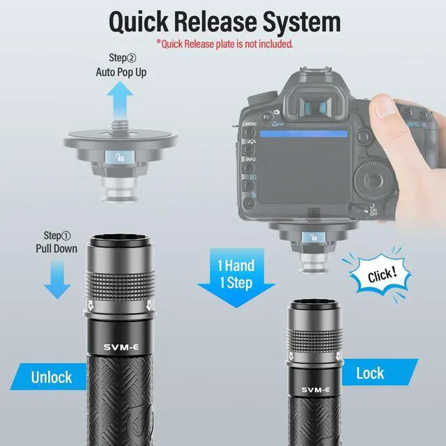 Wide Compatibility: Featuring an innovative one-button reversible 1/4" and 3/8" screw design, the SVM-145 allows you to switch screw types quickly and connect seamlessly with various tripod heads or DSLR cameras