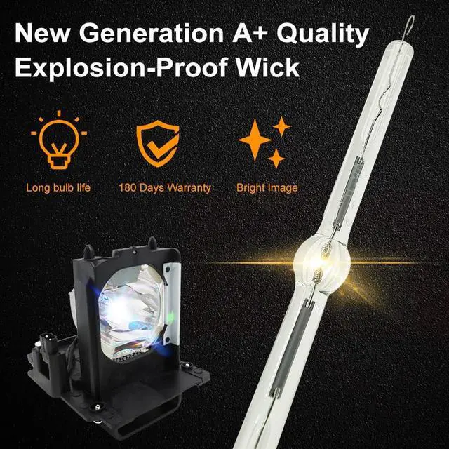 High-Quality Lampwick: Use A+ quality lampwick, 180 Watts long-term stable light output, 4000-4500 hours long time lifetime, Only a little brightness decreases during the Entire Lifetime, continuously provide bright, clear picture. ^^ Part number &