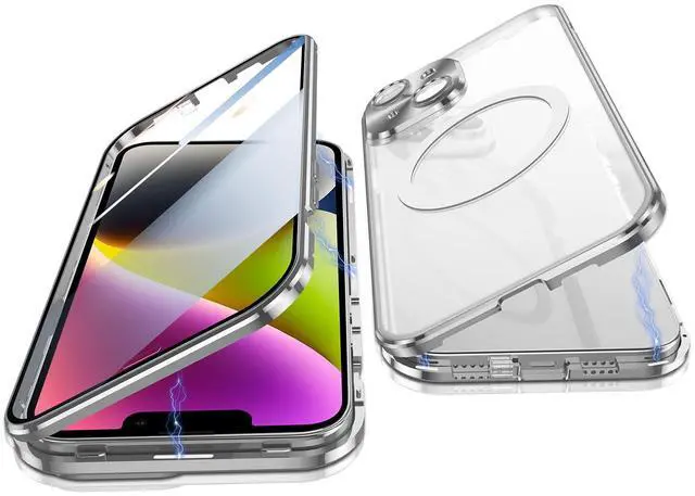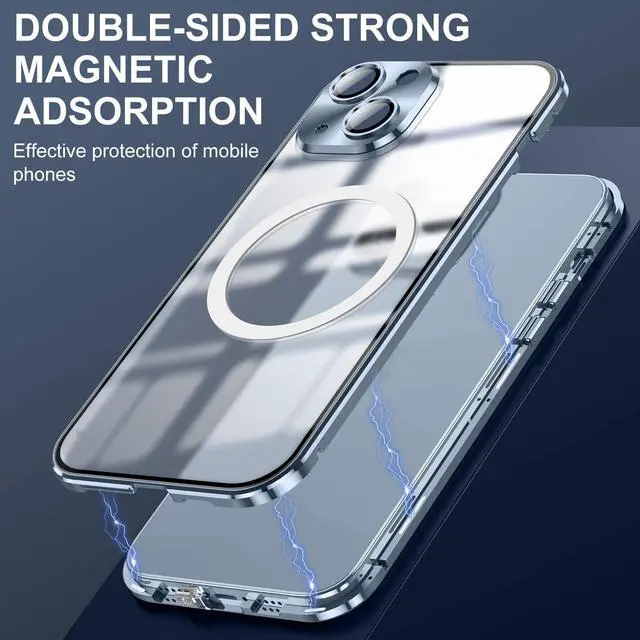 [Compatible with Magsafe Accessories]Compatible with Magsafe Accessories, Let you enjoy the fun of Magsafe Accessories[Metal bumper with magnetic adsorption technology, 360 degrees both sides perfect protection]The magnetic field adsorption technology takes you to the new era of the case. From now on, the installation of cases became a pleasure. It makes your iPhone stand out from the crowd. Strong magnetic automatic adsorption mobile phone shell closure, easy to assemble. More installation methods are waiting for you to find out. [Please remove the tempered glass protective film before installation][Port precision cuts do not obstruct the signal][materials]1.