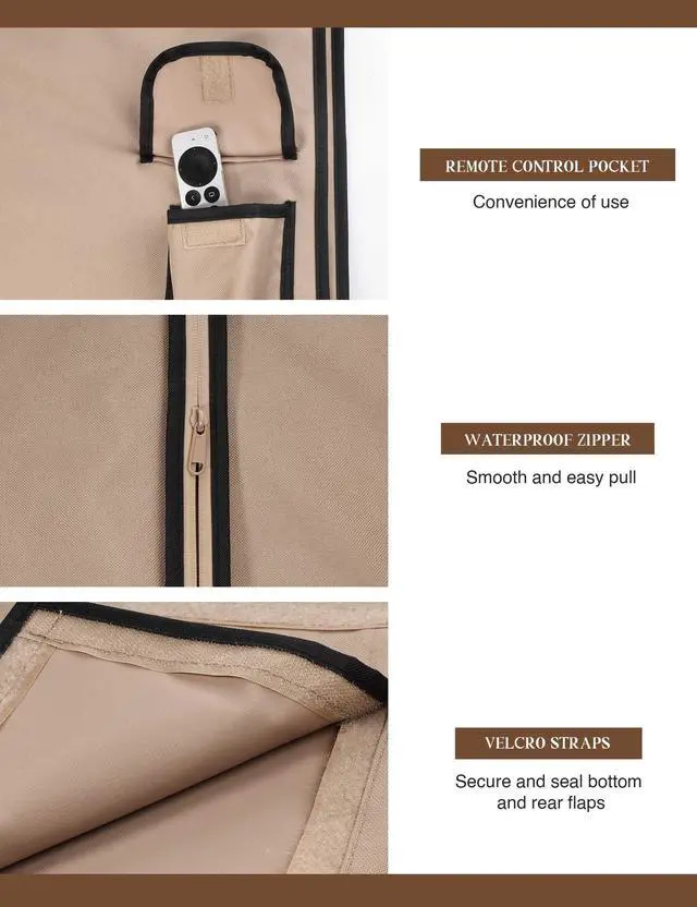 Use: The convenient waterproof zipper provides quick installation and removal, so you don't have to take off the entire cover when you want to use your TV. The pocket behind the TV cover makes it easy to store your remote control ^^