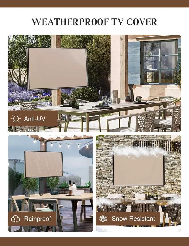 Outdoor TV: Protect your outdoor TV with our outdoor TV cover, featuring a long-lasting design and waterproof interior PVC coating. Our outdoor TV cover is the perfect solution for keeping your TV safe and secure, even during severe weather ^^