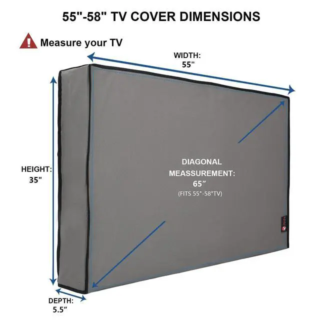 Find The Right Fit: Available in the perfect size for your outdoor TV, our cover measures 55 inch wide, 35 inch high, 5 inch deep. Before purchasing, be sure to measure your TV to ensure a proper fit ^^