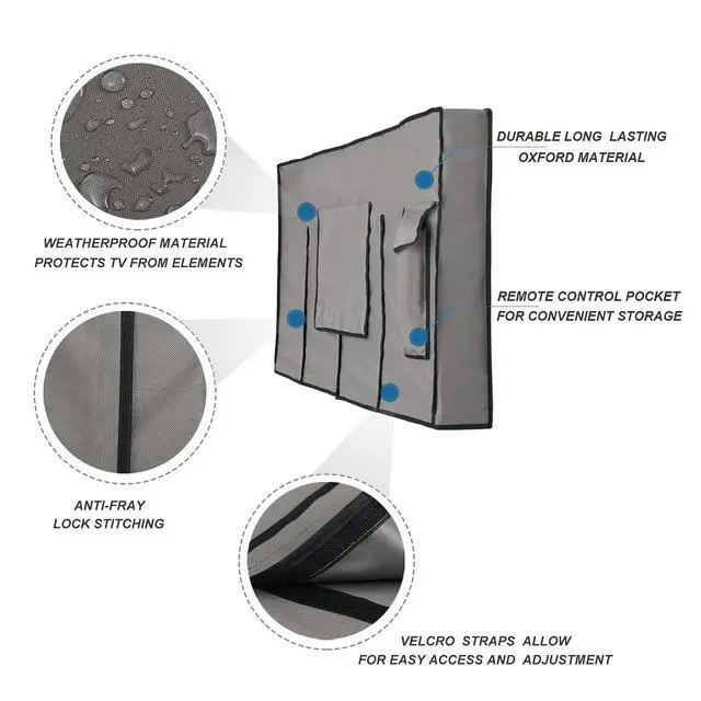 Long-lasting Material: Our outdoor TV cover is made from heavy-duty materials, making it highly long-lasting and able to keep your TV protected for years to come. Keep your TV safe and secure with our high-quality TV cover ^^
