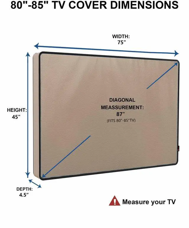 Find The Right Fit: Available in the perfect size for your outdoor TV, our cover measures 75 inch wide, 45 inch high, 5 inch deep. Before purchasing, be sure to measure your TV to ensure a proper fit ^^