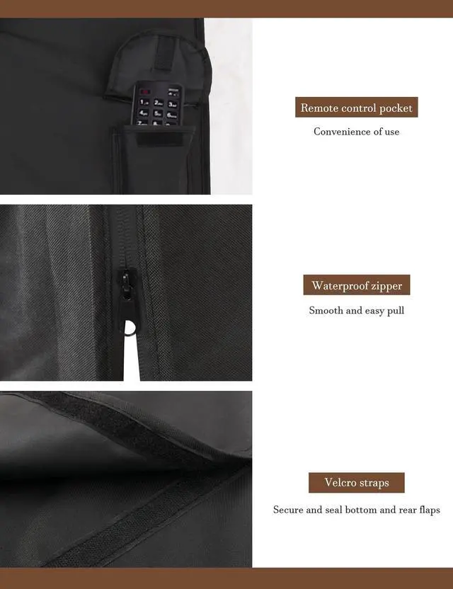 Use: The convenient waterproof zipper provides quick installation and removal, so you don't have to take off the entire cover when you want to use your TV. The pocket behind the TV cover makes it easy to store your remote control ^^