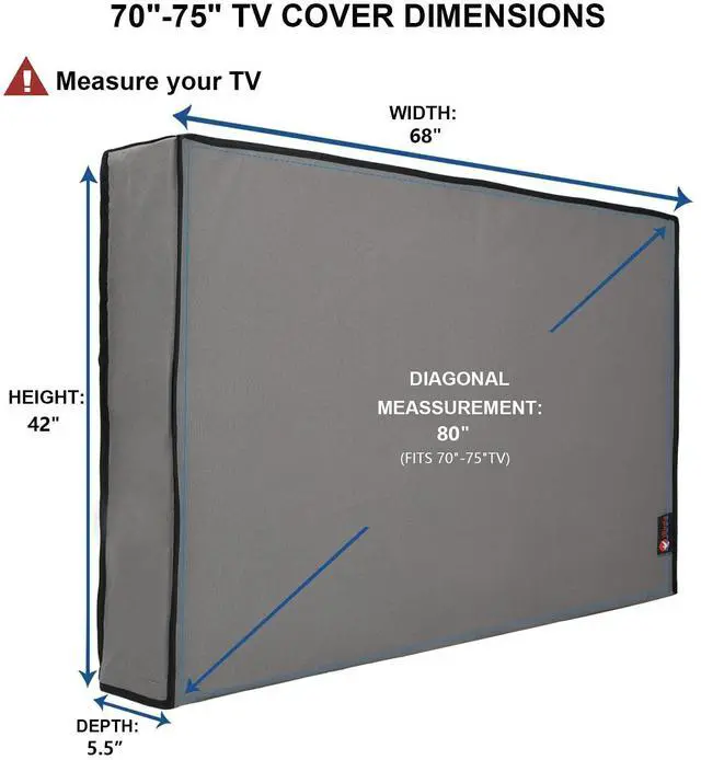 Find The Right Fit: Available in the perfect size for your outdoor TV, our cover measures 68 inch wide, 42 inch high, 5 inch deep. Before purchasing, be sure to measure your TV to ensure a proper fit ^^