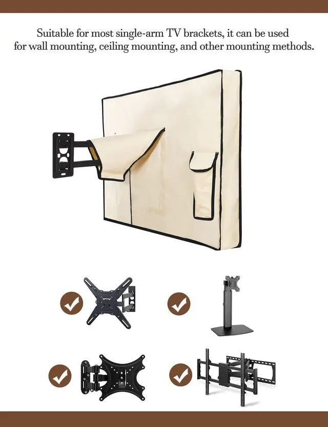 Use: The convenient waterproof zipper provides quick installation and removal, so you don't have to take off the entire cover when you want to use your TV. The pocket behind the TV cover makes it easy to store your remote control ^^