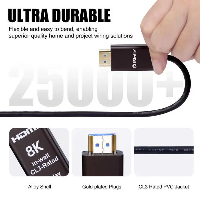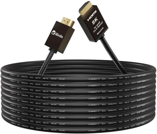 iBirdie 8K Fiber Optic HDMI Cable 50 Feet 16 Meter, in-Wall CL3 Rated, Directional Active Cord, Work on 8K 60hz, 4K 120hz, HDCP 2.3 2.1, 48 Gbps Compatible for Apple-TV PS5 Xbox 4080 4070