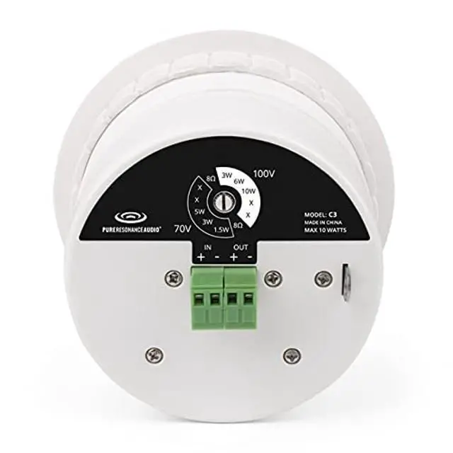 Pure Resonance Audio C3 3 Micro Pendant Speaker Kit The Pure Resonance Audio C3 3 pendant speaker kit features a stylish and intelligent design ideal for exposed structures or open plenum ceilings. The C3 pendant speaker system delivers superb sound masking, background music, and paging in offices, restaurants, retail stores, resort and hospitality venues, or any other open architecture high ceiling environments, and other spaces where hanging pendant speakers are required. With 8 Ohm and commercial 70 Volt audio taps and integrated single point mount, the C3 speaker is designed to provide excellent sound quality for a wide variety of business music sound system applications such as background music, paging, and sound masking.
