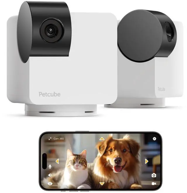 VIVID 1080p HD VIDEO & FULL 360 VIEW Check on your fur baby and home anytime, anywhere. Enjoy a pan-tilt rotation camera with a 105 viewing angle, high-quality 8x zoom, and vivid night vision, ensuring no moment is missed ^^ CRYSTAL-CLEAR 2-WAY AUDIO Alleviate your pets separation anxiety by chatting with them and listening to them bark or meow back! Reinforce positive behavior with audio feedback ^^ PRIVACY MODE FEATURE & ADVANCED ENCRYPTION: The new camera-off feature ensures added domestic privacy; The lens view can be physically blocked with an app and pan-tilt rotation; Top-tier encryption to ensure your data is safe ^^ AI-POWERED REAL-TIME ALERTS (MOTION & SOUND RECOGNITION) With the help of an optional yet powerful Petcube Care subscription, get notified of any activity at home with instant sound and motion alerts. Count on high-quality technology delivering real-time alerts for both human and pet identification ^^ EXTRA QUICK 1-MINUTE SET-UP Download the Petcube app. Plug the cam into a power outlet. Link to your home WiFi network. Cam 360 is only compatible with the 2.4GH z WiFi network (does not support 5GHz Wi-Fi).