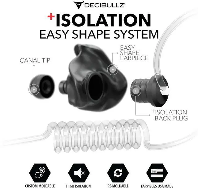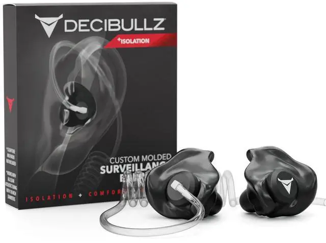 CUSTOM TWO-WAY RADIO EARPIECE: Our top-rated Decibullz +Isolation radio surveillance earpieces connect easily with clear acoustic tubes for a perfect-fitting two-way radio headset that will stay in place no matter the environment. ^^