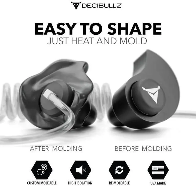 QUICK & EASY FITTING PROCESS: Using a patented thermoplastic, the fitting process is quick and easy. Simply heat the earpiece molds in boiling hot water, snap the adapter and earpieces onto your clear tube radio, and shape them to your ears. Decibullz are also remoldable, so you can keep molding them until you get the exact fit you are looking for.