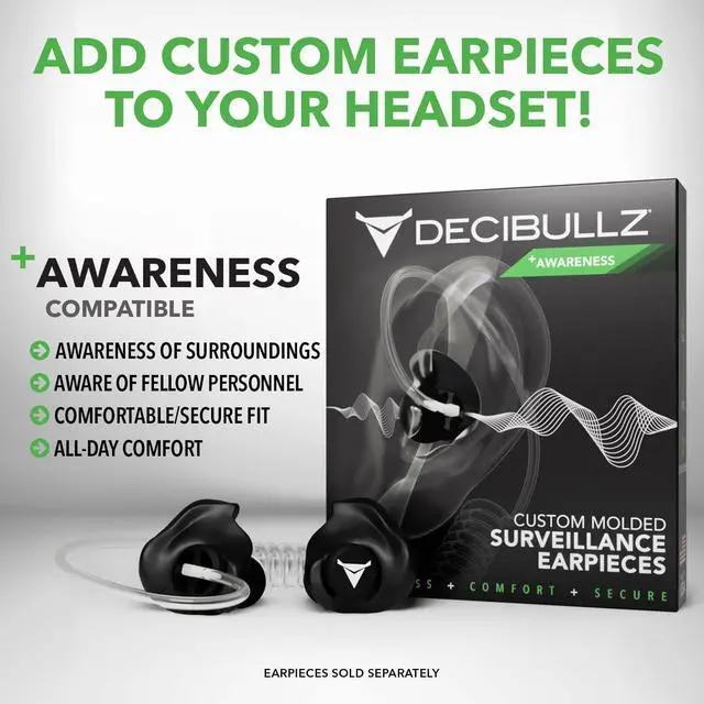 ^^ Customizable Upgrades: Decibullz two way headpiece comes with standard silicone mushroom earpiece adapter. If you are seeking a customizable fitted earpiece for a profession Decibullz had a wide arrange of customizable moldable fitted earpieces the seamlessly concept to this listen only headset. Where you seek for an awareness compatibility or isolation there is an earplug that works for you.
