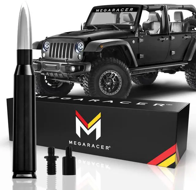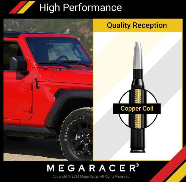 ^^ QUALITY MATERIAL: Mega Racer's Jeep antenna is made with durable 6061 Solid Aluminum and has an internal copper coil, which is 500% more conductive than steel to ensure crystal clear music. Avoid hearing static noise when changing stations.