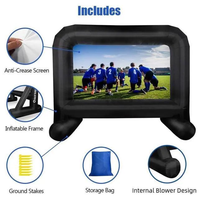 After your event, this blow up movie screen collapses for fast clean-up and convenient storage. ^^ TRAVEL-FRIENDLY - Compact one-piece, lightweight and folding design, comes with a storage bag. This mega inflatable cinema screen is easy to take from location to location. Great for summer movie night, camping adventures, picnics, and outdoor birthday and wedding parties. ^^ GREAT INFLATABLE MOVIE SCREEN-Awesome outdoor movie theater bring your family and friends together for a night of endless fun in your backyard. We are quite sure that you will be super-impressed with HIGH QUALITY of our inflatable movie screen.