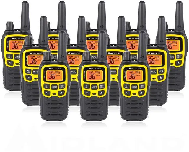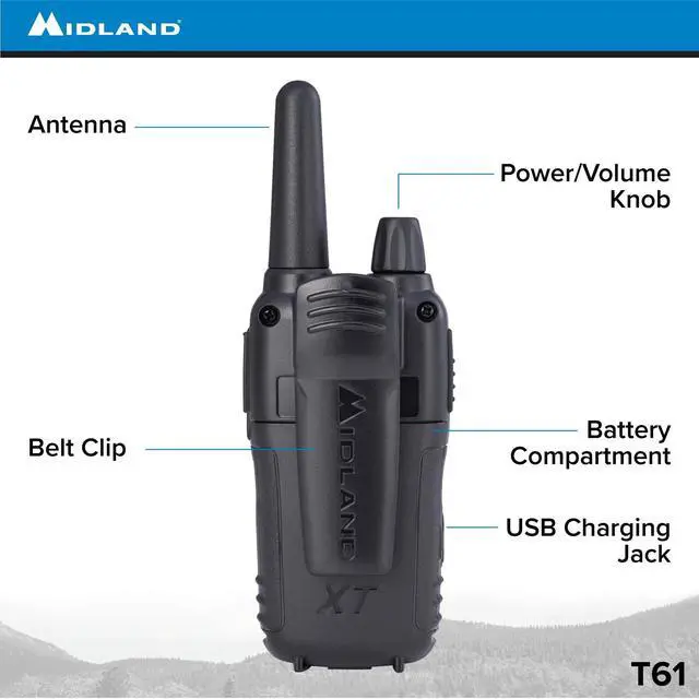 The Midland T61VP3 X-TALKER Walkie Talkie is a water resistant radio that provides clear point-to-point communication, reception, transmission, and sound quality. Connection to other FRS/GMRS two way radios is limitless as long as you connect to the same channels/frequencies. The T61VP3 features 121 privacy codes, 9 levels of eVOX - Hands-Free Operation, a 32 mile communication range, and 36 scannable channels (14 extra channels) with easy button access. Unlike other FRS walkie talkies on the market that use lithium batteries, the T61VP3 X-TALKER has dual power options - use 700mAh rechargeable batteries (X2) or 3 AAA Alkaline batteries each (not included).
