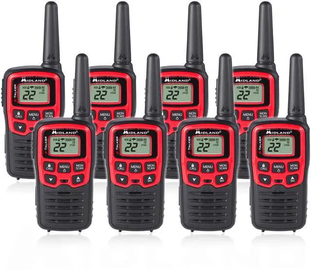 Midland T31VP 22 Channel FRS Walkie Talkie - Up to 26 Mile Range Two-Way Radio - Red/Black (Pack of 8)
