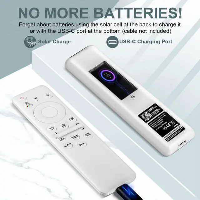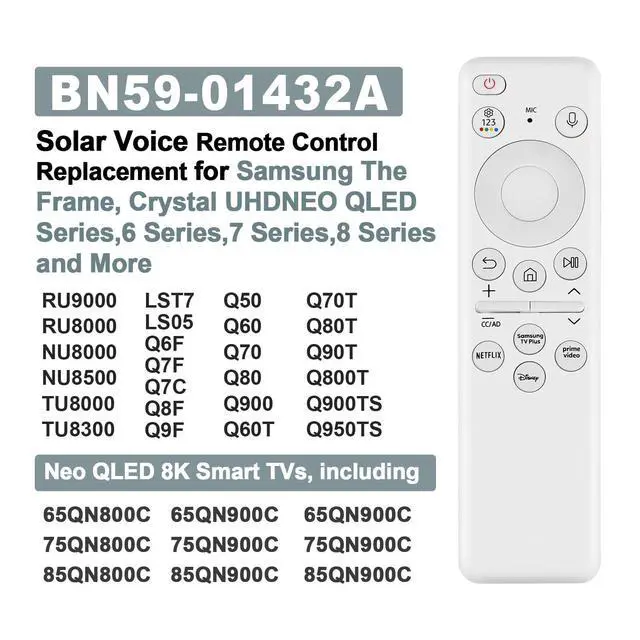 Compatibility: Solar remote compatible with Samsung Smart TVs from 2019 and 2023 model years, Also for Samsung Smart Frame Curved Neo QLED 8K HDR Smart TVs 65QN800C / 75QN800C / 85QN800C / 65QN900C / 75QN900C / 85QN900C / 65QN900C / 75QN900C / 85QN900C ^^