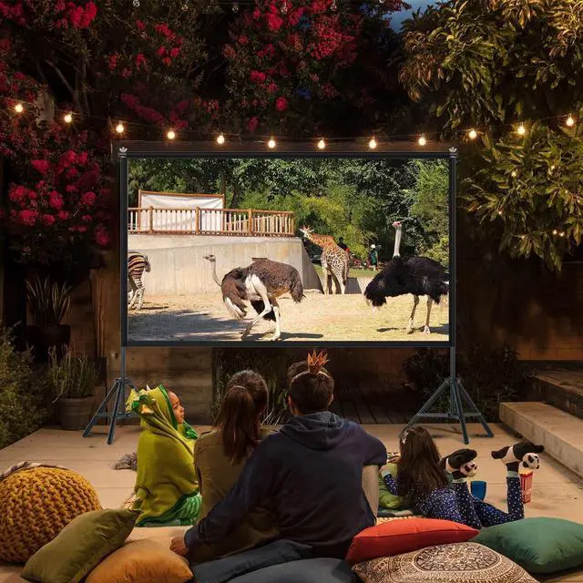 Stand: 120-inch diagonal, 16:9 aspect ratio, 160 viewing angle, HD projection. Whether you are alone or with your family and friends, you can enjoy the excellent viewing experience brought by this projector screen in any indoor and outdoor setting. ^^ Anti-Wrinkle HD