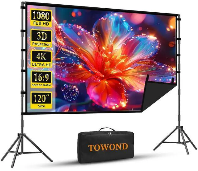 ^^ Portable & Compact: The portable projector screen with stand can be easily packs into a lightweight carrying bag for transport. Fits in car trunks (even sedans! ) and stores effortlessly. Perfect for meetings, events, or outdoor gatherings. You only need one hand to lift the 9.7 pounds screen for projector and carry it anywhere you want to go to start your movie journey. ^^ Easy to