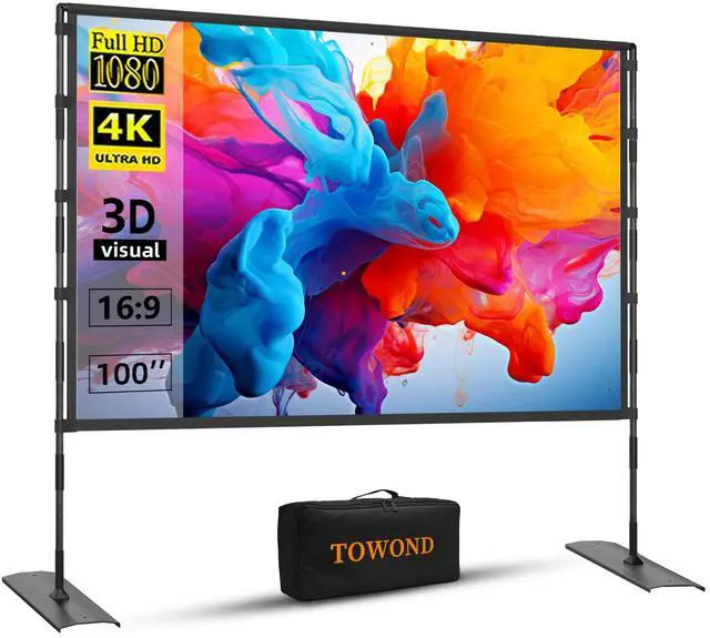 Wrinkle Free Projector Screen: This 100-inch projector screen has a 16:9 aspect ratio, 160 degree viewing angle, 4K Ultra HD. The projector screen is made of polyester milk silk, which is thicker than other ordinary screens, washable and soft, easy to clean. The wrinkle-resistant design brings you more fun and is even able to support front and back projection.