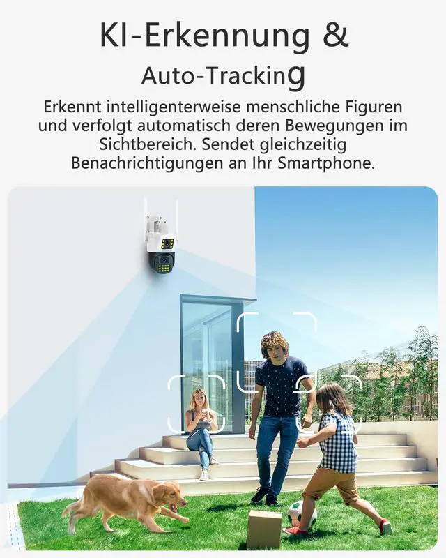 Two-lens View& AI Auto Tracking VSTARCAM security cameras wireless outdoor,Two cameras in one machine,with fixed and rotating cameras,When you click on the screen, the dome screen automatically positions and rotates,and quickly locates and fixes the target.If there is a human figure on the camera image,the automatic tracking will be activated.