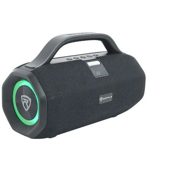 ^^ RUGGED AND PORTABLE: IPX5 water-resistant design with a carry handle and rubber input cover for added durability; roller volume knob for easy control.