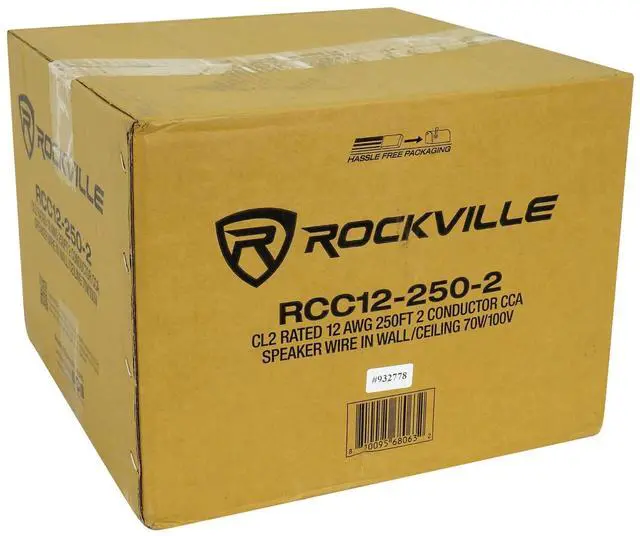 The Rockville RCC12-250-2 12 AWG 250-foot CCA Speaker Wire delivers reliable audio performance for home theater and commercial installations. Designed for in-wall and ceiling use, its CL2 rating ensures safety and compliance. The copper-clad aluminum construction provides clear sound with minimal signal loss, making it ideal for 70V systems and multi-room setups. With a flexible jacket and high strand count, this wire is easy to route and maintains signal integrity over long distances.