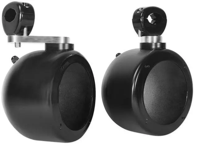 Description: Rockville is proud to introduce our all new line of 4 aluminum tower handlebar speaker Pods. The MAC40B comes in pairs and includes rugged aluminum clamps for easy installation to any bar measuring from 3/4" To 1. 5" Diameter. Two precision molded high impact rubber inserts a nice tight Fit. Our clamp inserts are precision-fitted to sit perfectly inside the metal clamps. these awesome pods are built of super strong aircraft grade 6061 aluminum. The MAC40B features a black powder-coat finish which offers unparalleled resistance to chipping, scratching, and fading. These Pods are fully marinized and 100% waterproof meaning they were designed to withstand even the harshest weather conditions. Aluminum cans will last forever! The sound quality of our pods is phenomenal! They feature the right amount of air space which translates to Perfect sound quality for use with our Rockville or Polk Audio or kicker 4 marine speakers. Our high efficiency design means more output! More audio output gets you louder, cleaner sound with less distortion.