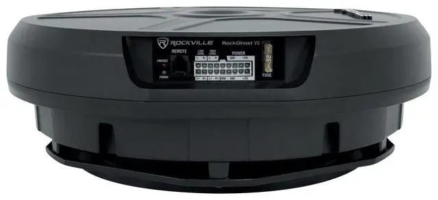 Technical Specs: 800W peak/200W RMS, 20Hz-150Hz frequency response, 14.17" diameter x 4.92" height, 10-gauge power wire required. Elevate your driving experience with the Rockville RockGhost V2s powerful, hidden bass solution.
