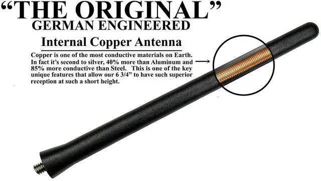• UNMATCHED RECEPTION / PERFORMANCE - Our 6 3/4" German Engineered Antenna uses choice quality materials, including a highly conductive Internal Copper Coil. While most short antennas are constructed of aluminum or steel, our copper coil is up to 85% more conductive allowing it to pull in stations most short antennas simply dream of. Simple Science, Real Results.