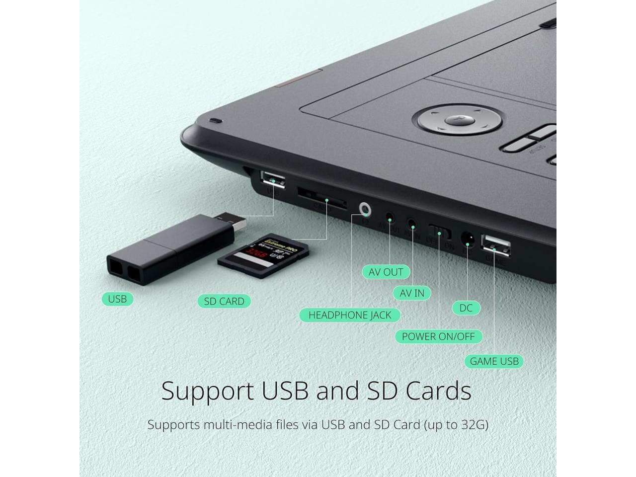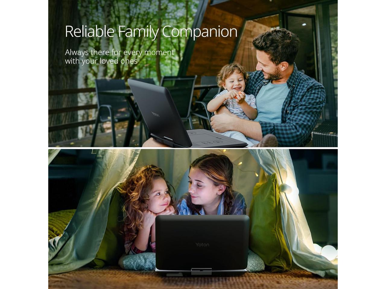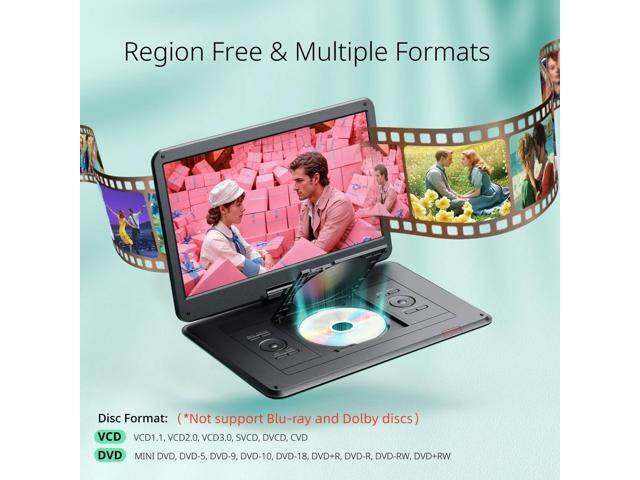 - 15.6 HD High Resolution Screen -- Enjoy crystal-clear viewing on the 1280*800 resolution swivel screen that rotates 270 and flips 180 for perfect angles. Yoton portable DVD player adopts the anti-glare display reduces eye strain during extended use, ideal for movies, shows, and educational content