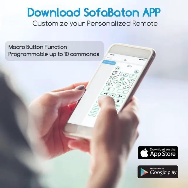 All-in-One Universal Remote Control SolutionThe SofaBaton U2 universal remote control lets you replace multiple remotes with one versatile device. Easy to program and set up, it's fully compatible with up to 15 devices, making it the ultimate universal TV remote for streamlining your home entertainment setup. ^^ Programming Macros Feature for SofaBaton U2Customize buttons on this universal remote control to execute multiple actions, like powering on your TV and receiver or shutting everything down. Program up to 10 commands per button, rearrange keys, and record macros for effortless control across devices.
