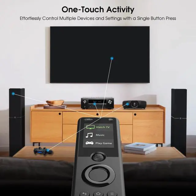 One-Touch Activities: Transform your entertainment experience with organized and personalized activities with a single command, you can control multiple devices simultaneously, the Activity feature allows you to initiate a sequence of predefined devices and settings. For instance, selecting "Watch TV" automatically turns on the TV, soundbar, and adjusts to the correct input source, eliminating the hassle of operating each device individually ^^