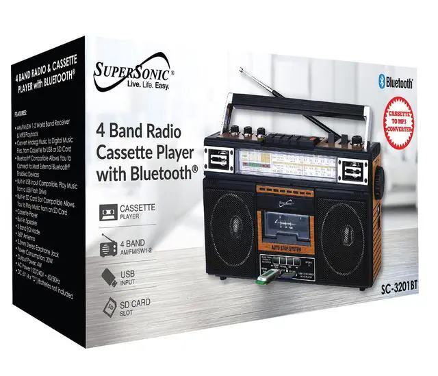 : Tune into AM, FM, and SW 1-2 World Band stations while grooving to your favorite MP3 tracks all in one funky box! ^^,: Transform old-school cassette tapes into digital gems stored on USB or SD cards with a touch of nostalgia preserving the past for the future! ^^: Connect to external devices via Bluetooth for an epic dance-off with your friends.